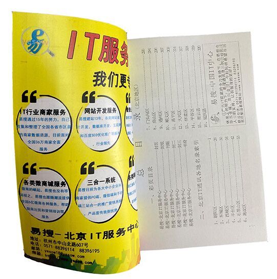 此书包括了IT行业电脑整机及PC配件、网络耗材、周边设备、办公设备、办公耗材、条码设备、安防设备、监控器材、数码周边、电子元件、手机及配件、电玩设备、系统工程、 包装印刷、IT维修保养、各大银行和政府采购机构的所有信息!